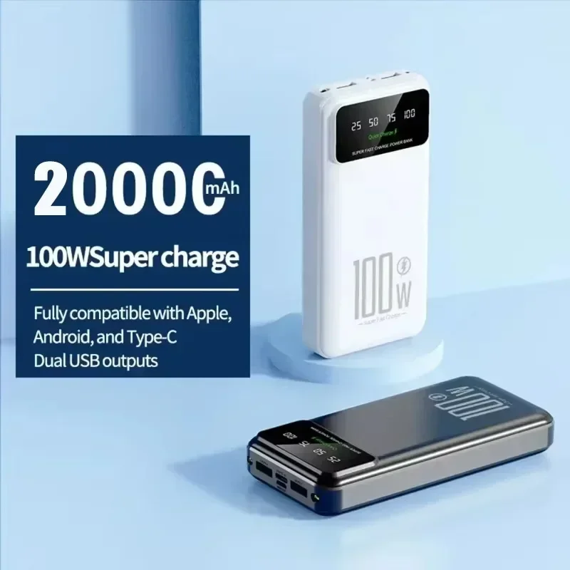 100W Fast Charging 20000mAh High Capacity Power Bank Portable Charger Battery Pack Powerbank for iPhone Huawei Samsung Xiaomi
