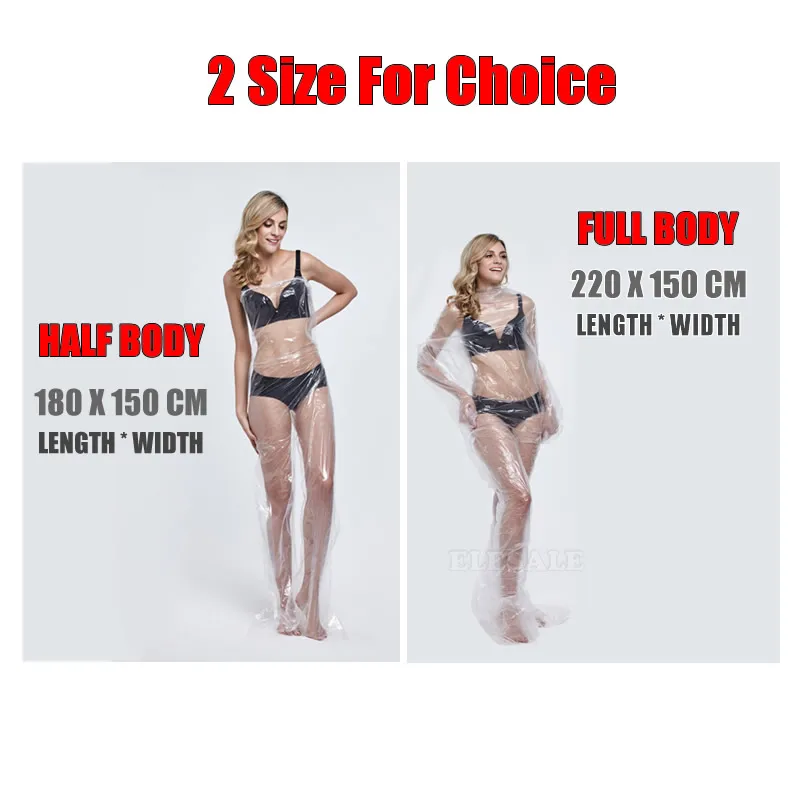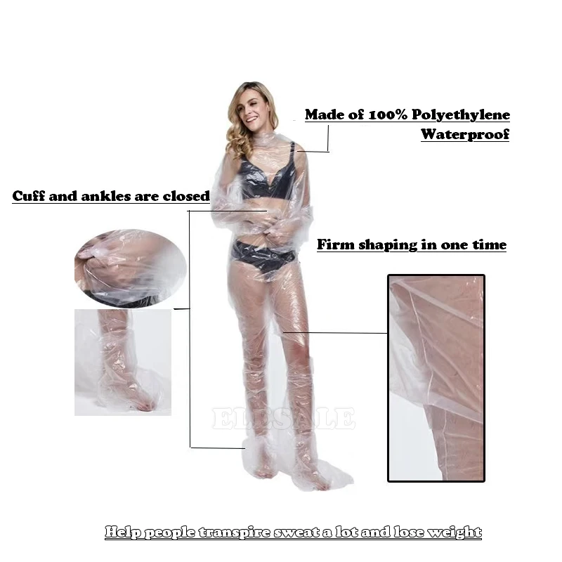10Pcs/Pack Disposable Sauna Sweat Coverall Clear Waterproof PE Plastic Body Suit Weight Loss Sauna Wholesale For Beauty Salon