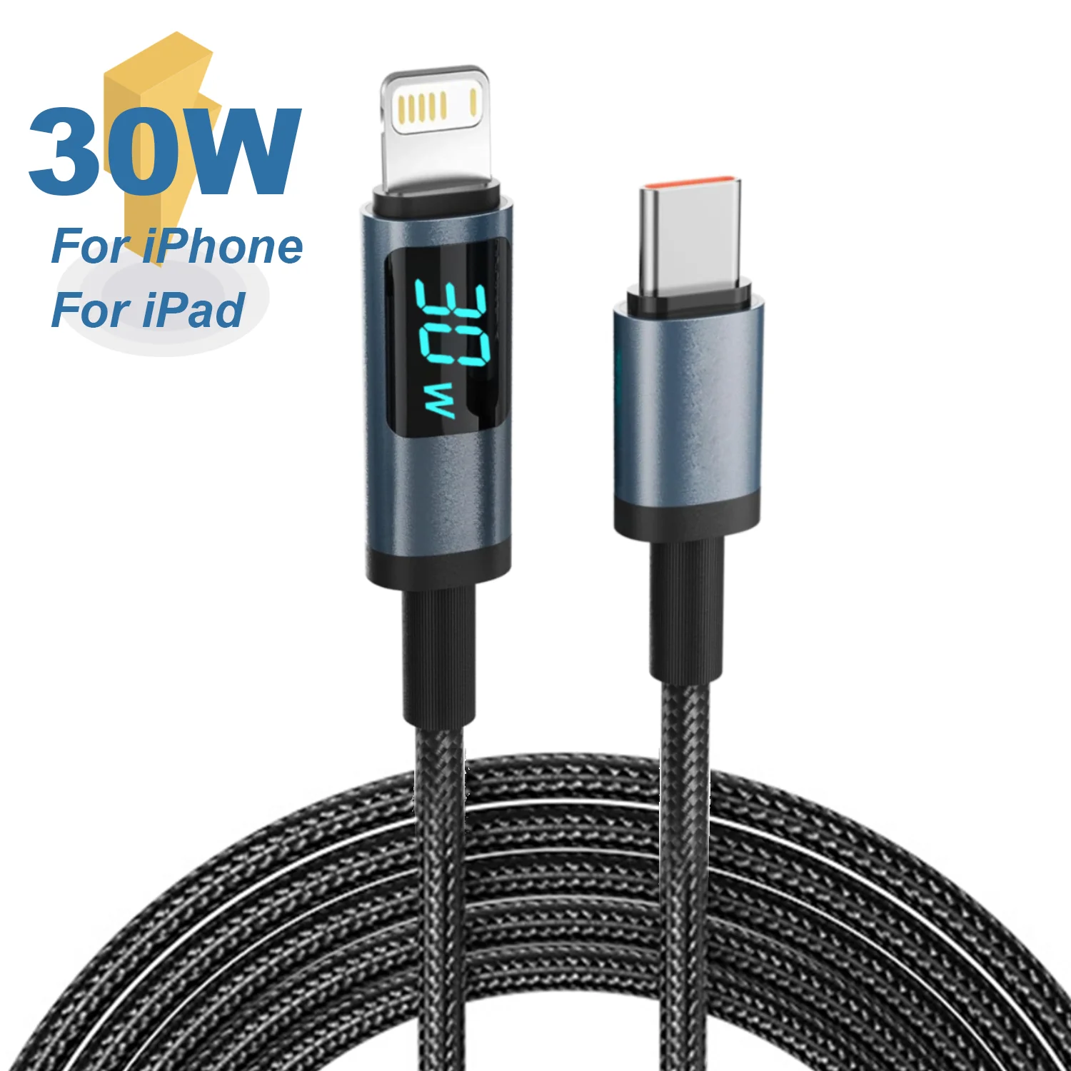30W Charging Cable Type C To Lighting Data Cable For iPhone 14 13 12 11 Pro Max 30W Fast Charge Digital Display Wire Cord