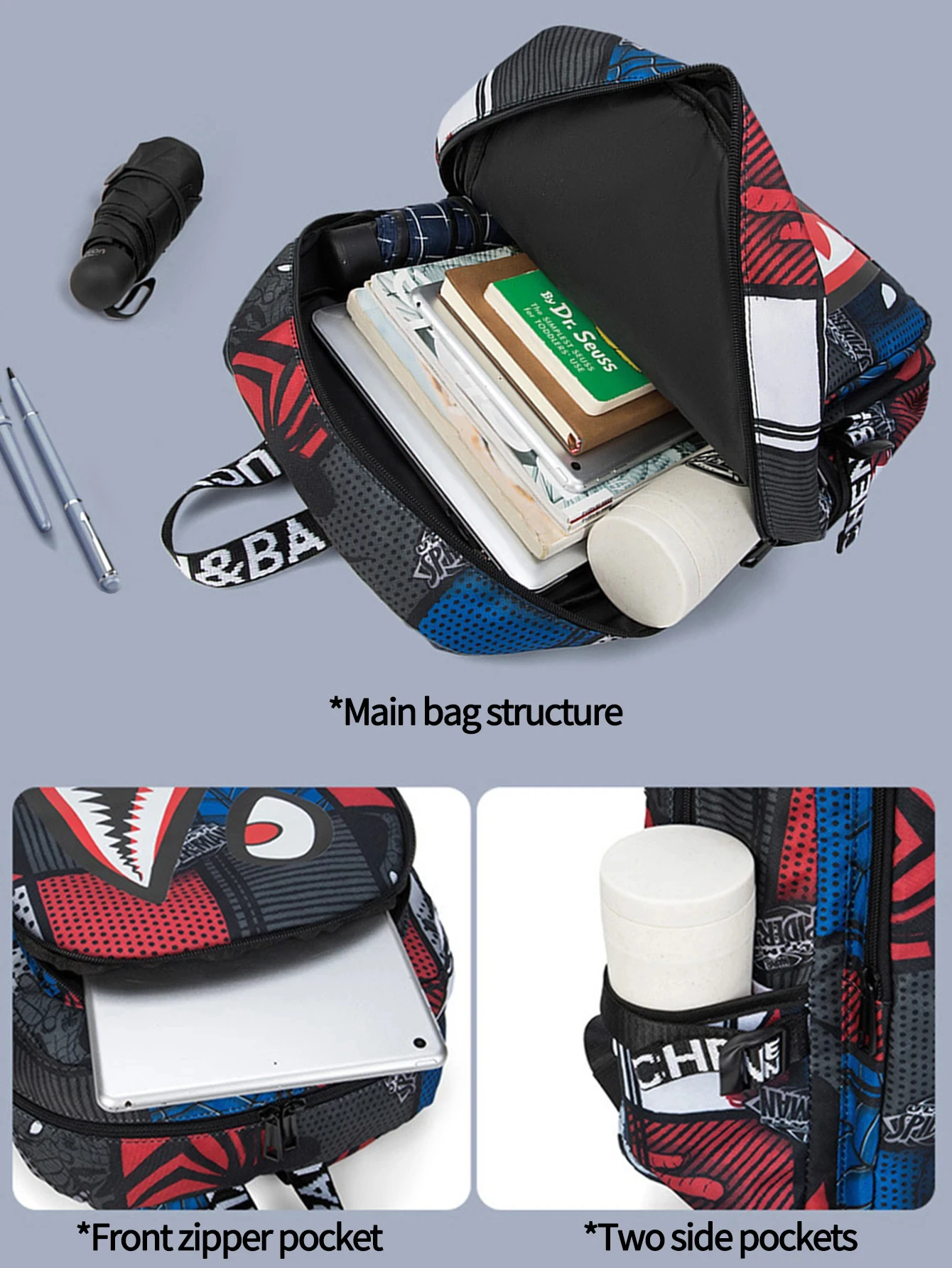 Anime Backpack Elementary Bookbag Travel Rucksack Cartoon Shark Print Primary School Student Satchel Backpack Mochila Infantil