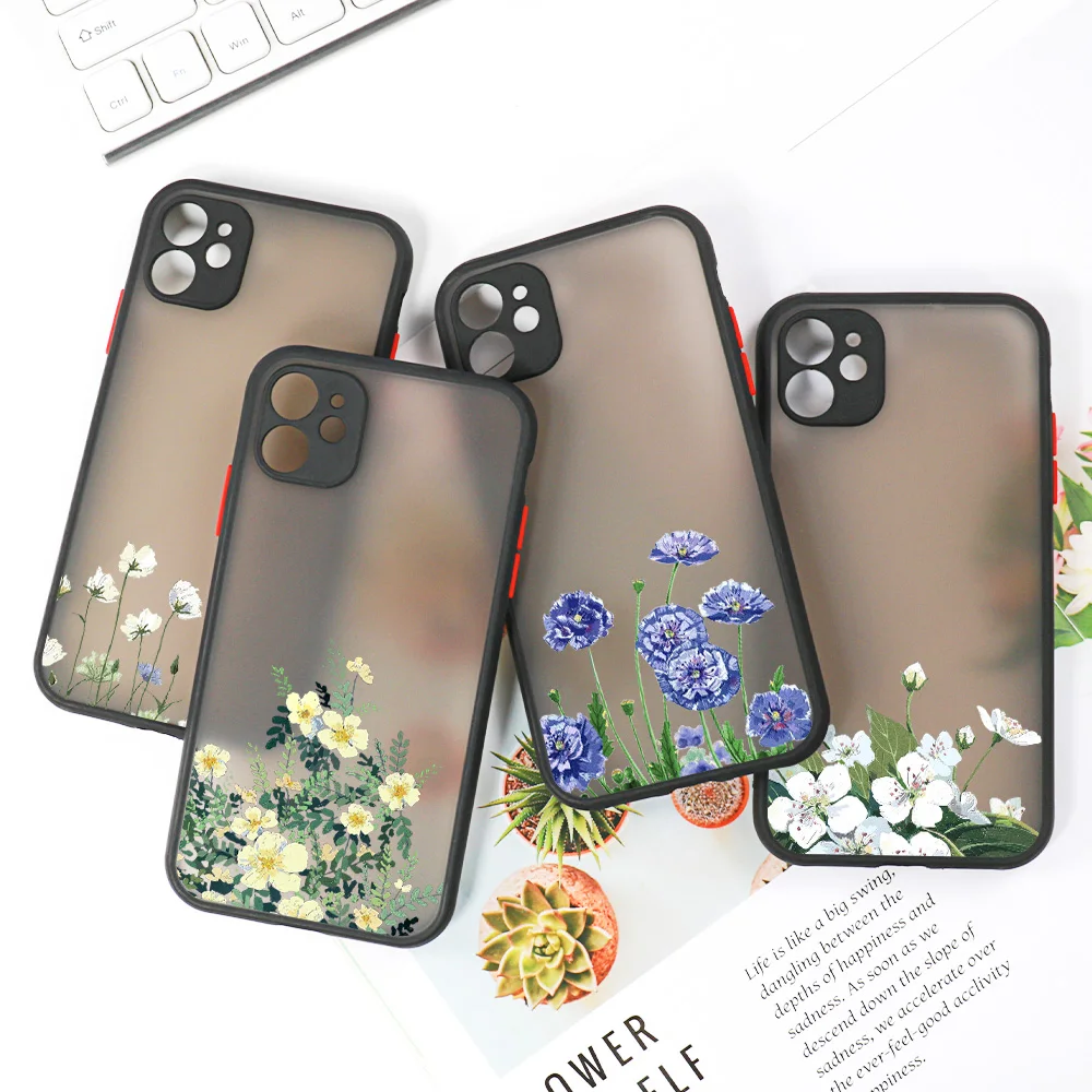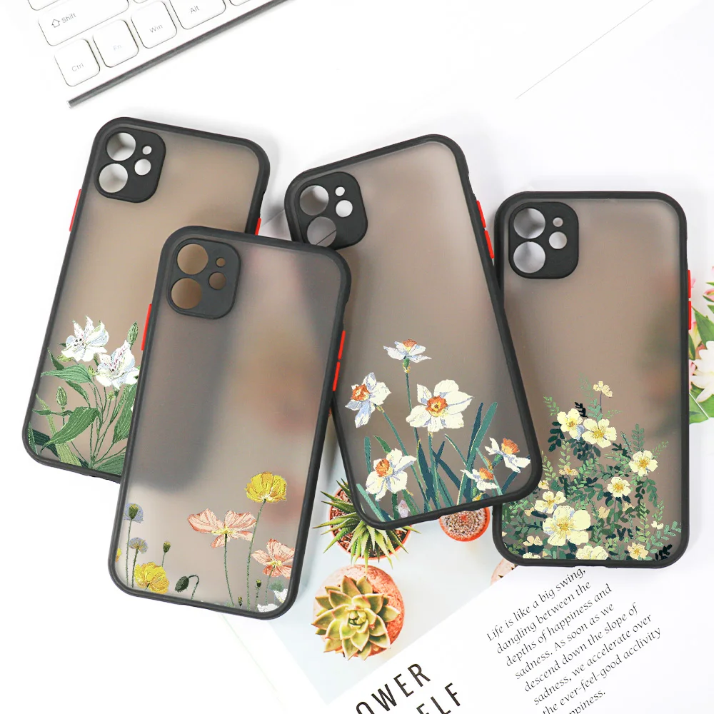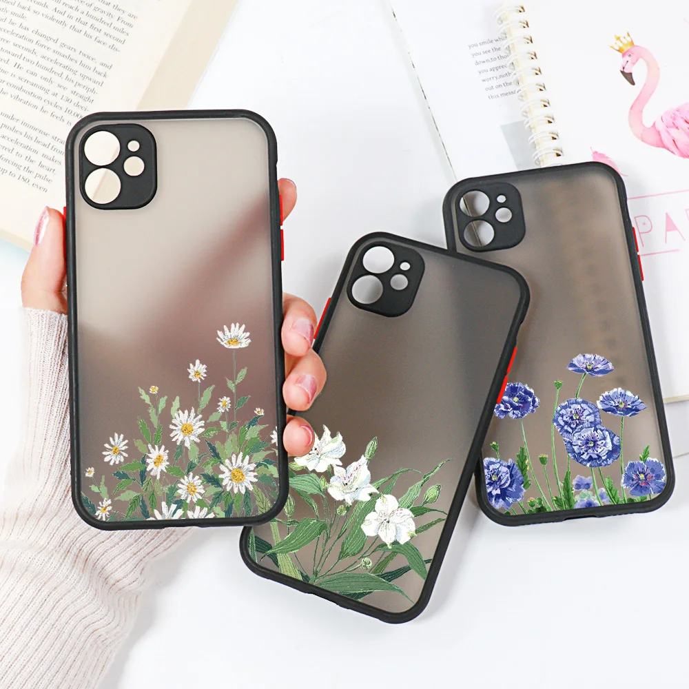 Fashion Flower Phone Case For iPhone 15 11 14 12 13 Pro Max X XR XS Max 12 13 Mini 14 15 Plus X XR XS Max Matte Shockproof Cover