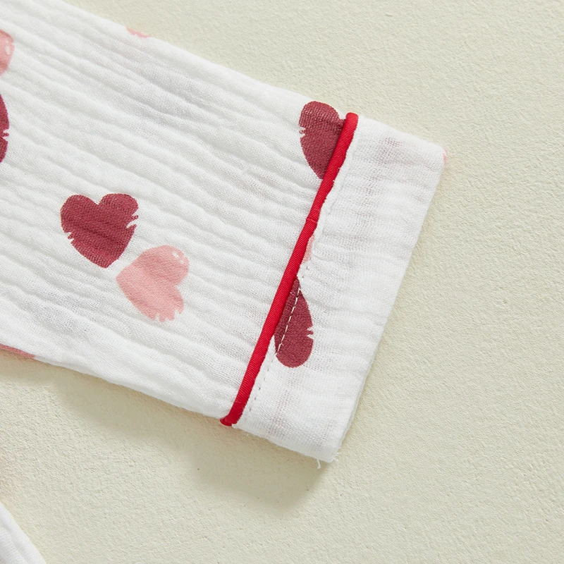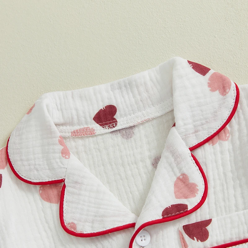 Kids Girls Pajamas Set, Heart Print Long Sleeve Shirt with Elastic Waist Pants Sleepwear