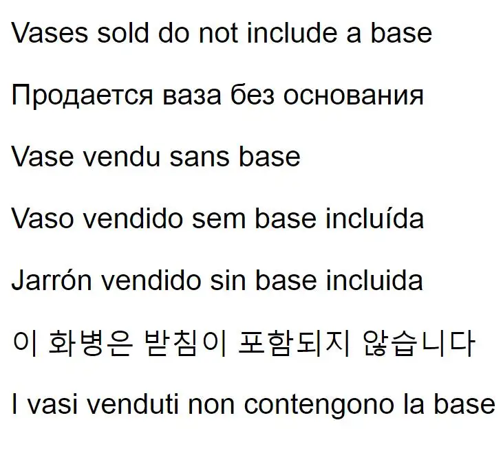 | Vases | Vases sold do not include a base |