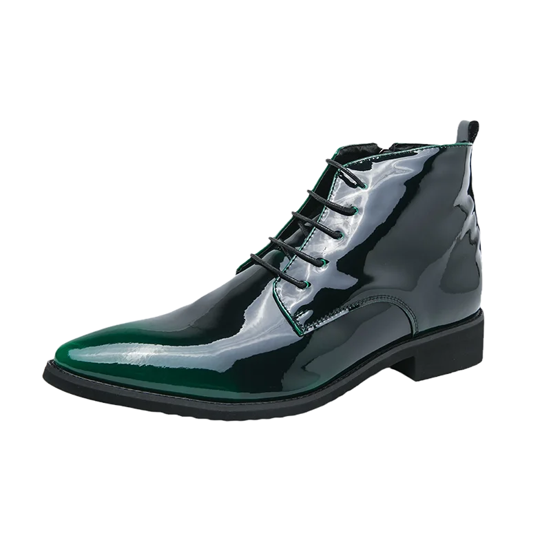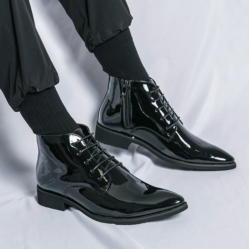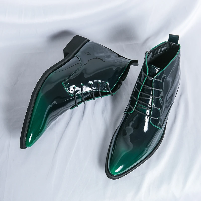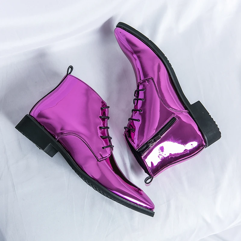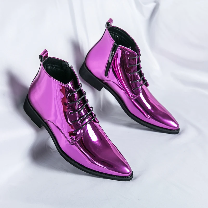 Luxury Chelsea Boots Men’s Shiny Leather Shoes Pointed High Top Shoes Men’s Banquet Dress Shoes High-end Purple Red Short Boots