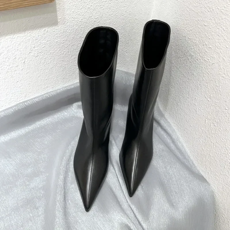 | Model Number | Black Pointed Toe Cat Heel Mid Calf Boots for Women |