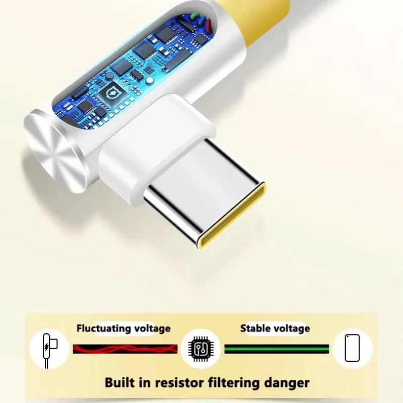 Product name: 120W elbow typec data cable Material: TPE Interface: TYPE-C Color: yellow/white Length: 1M/1.8M
