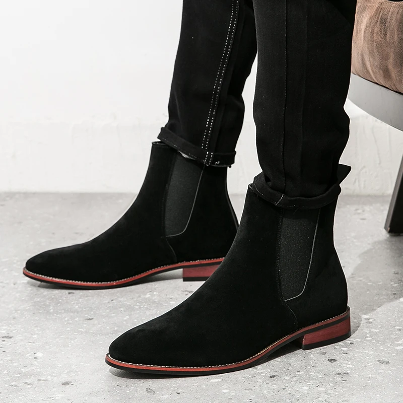 Winter Men’s British Style Chelsea Boots Cow Suede Genuine Leather Men Fashion Ankle Boot Mens Casual Short Boots High-Top Shoes