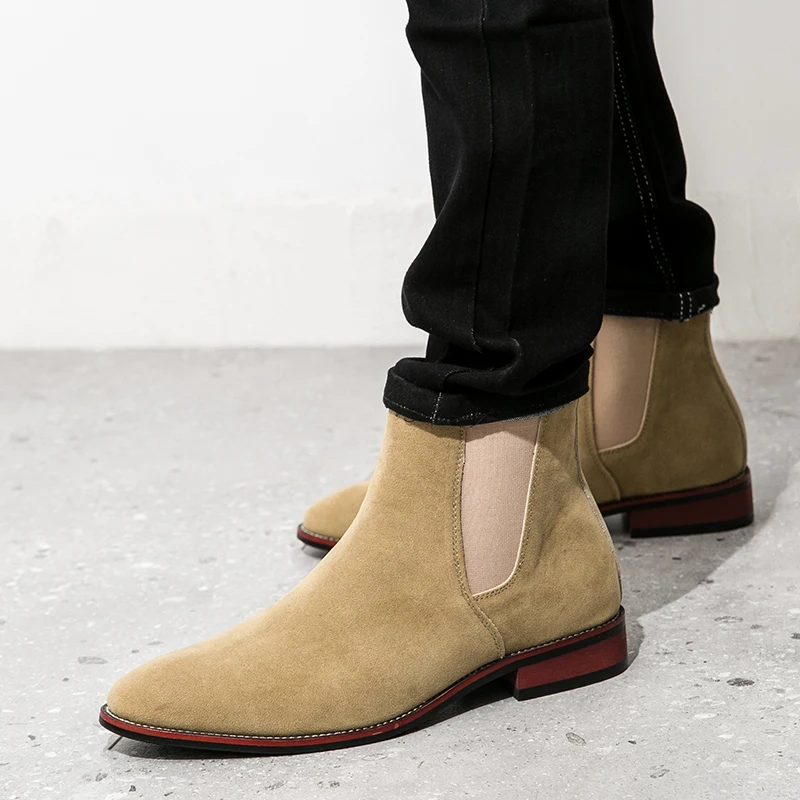 Winter Men's British Style Chelsea Boots Cow Suede Genuine Leather Men Fashion Ankle Boot Mens Casual Short Boots High-Top Shoes